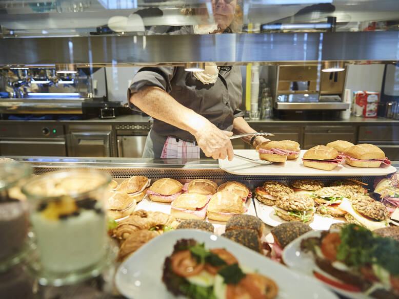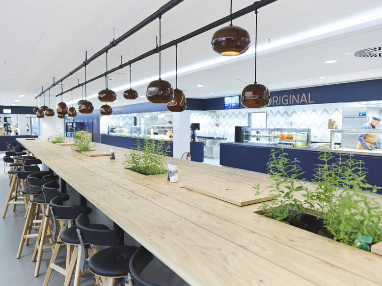 Für eine entsprechende Verpflegung sorgt das OTTO-Kochwerk mit drei verschiedenen Kantinen und zwei Bistros. Es gibt ein vielfältiges Frühstück, sowie täglich wechselnde Mittagsangebote, verschiedene Salatbars und auch vegetarische bis vegane Optionen. Und vor allem in den wärmeren Monaten lädt der grün bepflanzte und mit einem Springbrunnen ausgestattete Boulevard im Herzen des OTTO-Campus dazu ein, die Pause draußen zu genießen – oder dort zu arbeiten.