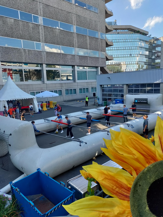 Zur durchweg guten Musikuntermalung musste man für das andere Highlight teilweise etwas länger anstehen. Die Human Soccer Anlage erfreute sich großer Beliebtheit. Hier konnten Teams gegeneinander Fußball spielen, allerdings als menschliche Tischkicker. Jede*r hatte so nur einen eingeschränkten Bewegungsradius, was auch versierte Kicker*innen an Grenzen stießen ließ. Beim Spielen, beim Zuschauen und auch danach wurde viel gelacht.